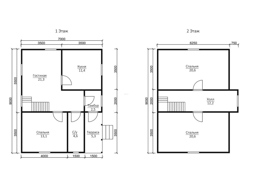 Самые востребованные размеры: мини - до 50м2 (чаще всего, одноэтажные); компактные - от 70 до 100 квадратов (обычно 2-этажные); большие - от 150 кв. М и больше.
